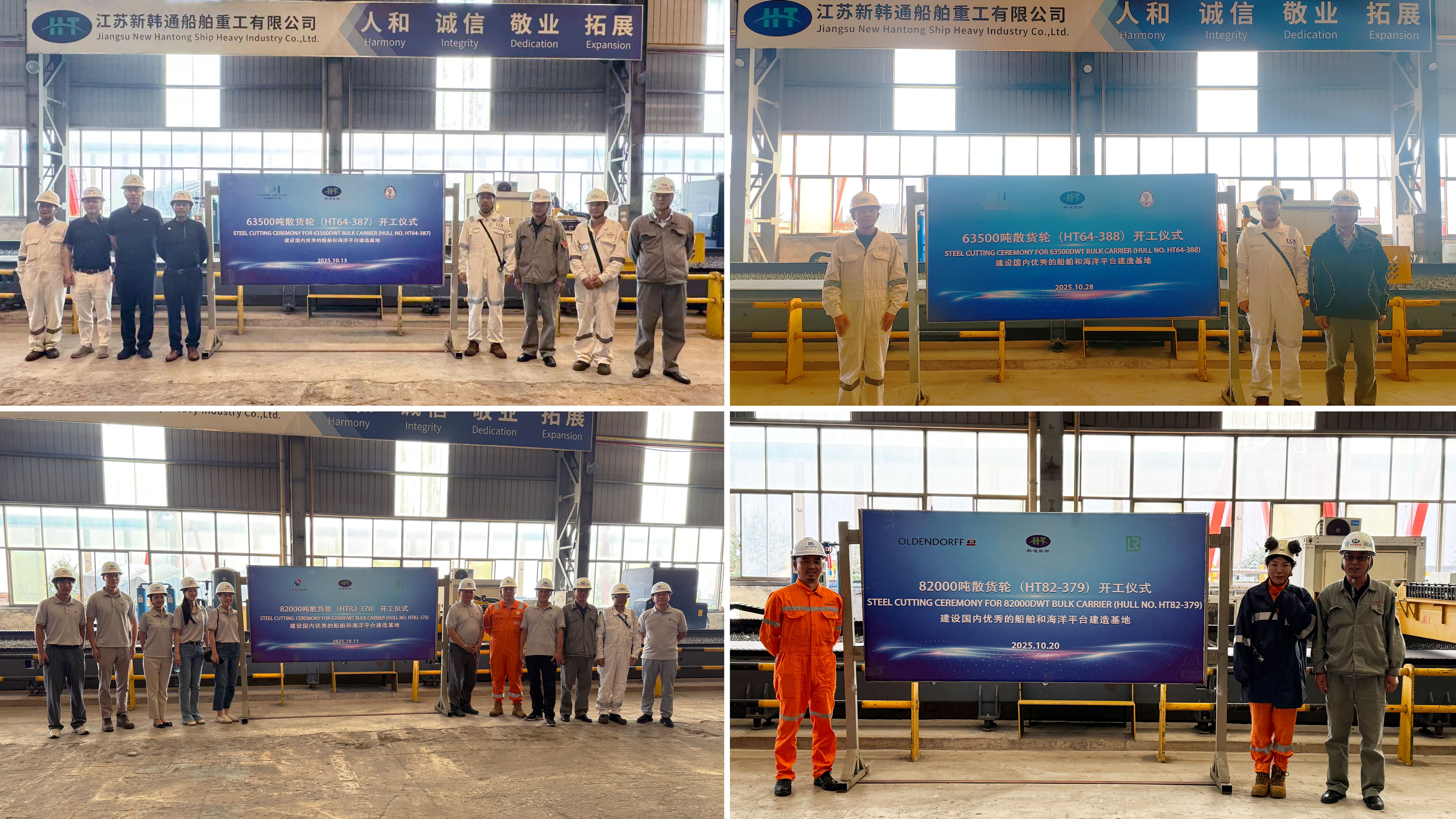 开工节点有序启动,为后续生产注入新动能。PIONEER建造的63500吨散货船HT64-387、HT64-388、Lestari建造的82000吨散货船HT82-370以及OLDENDORFF项目的HT82-379船舶相继开工。